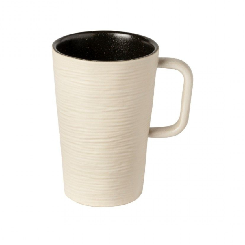 Vysoký kameninový hrnek s uchem vás naprosto uchvátí svým jedinečným designem. Nádherná netradiční kombinace výrazných struktur a barev si najde své obdivovatele. Elegantní čisté linie vytvářejí jemné kontrasty, které jsou podtrženy spojením černé a krémové barvy. Požitek z vašeho oblíbeného nápoje ve vás zanechá působivý dojem. Hrnek je vhodný pro podávání čaje či teplého kakaa v sychravých dnech.