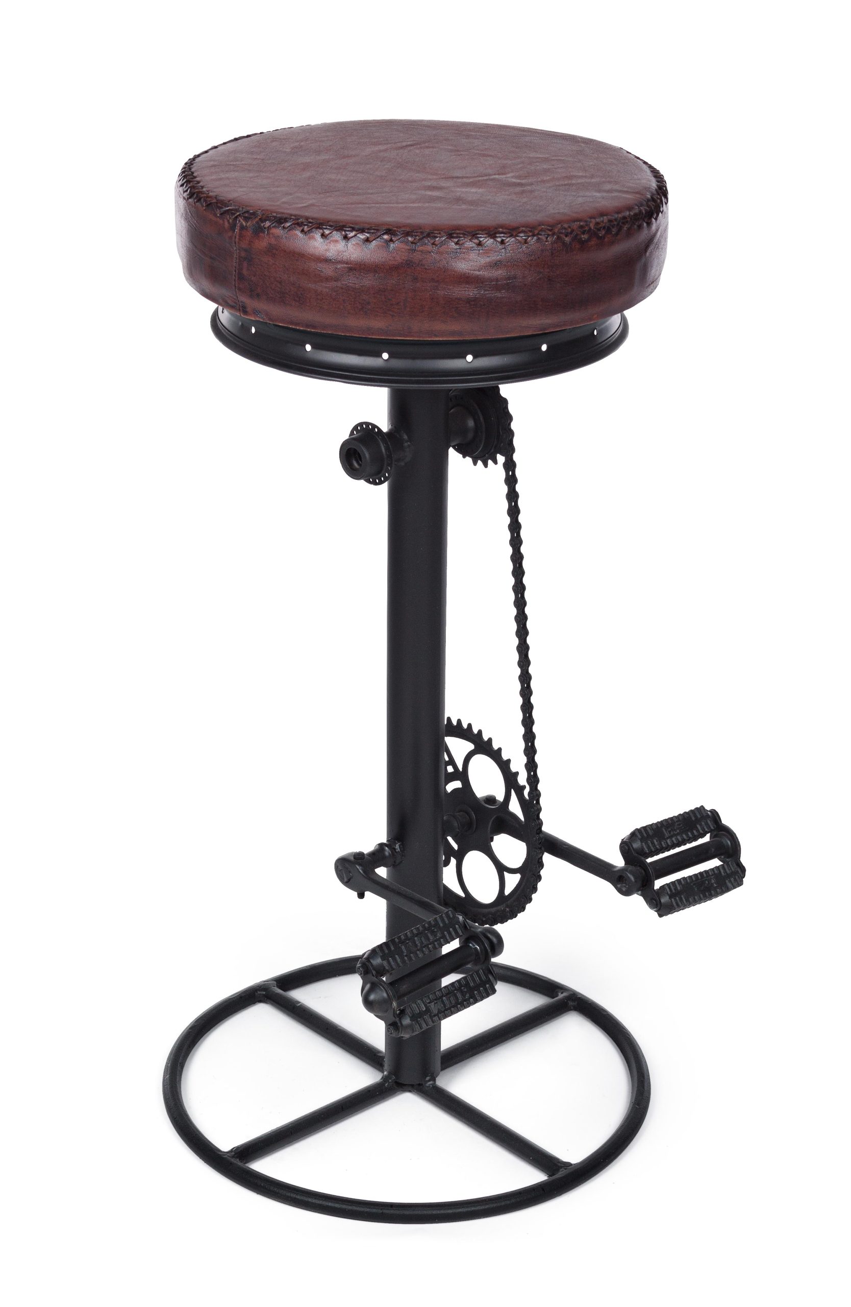 Designová barová židle CYCLE od italské firmy stylového nábytku BIZZOTTO s kovovým rámem a koženým sedákem ve stylu bicyklu.