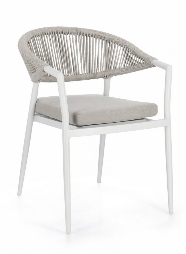 Designová zahradní židle MILLOR od italského výrobce stylového nábytku BIZZOTTO v kvalitním pevném hliníkovém provedení s tkanou opěrkou a vyjímatelným sedákem.