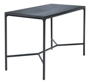 Černý barový stůl HOUE Four s deskou z kovových lamel a černě lakovanou podnoží je moderní, minimalisticky řešený stůl, který velmi dobře doplní interiéry s industriálními prvky i prvky moderního designu. Hledáte-li stylový jídelní stůl do menší kuchyně, na terasu nebo do veřejného prostoru vaší kavárny, restaurace či baru, je tento stůl výbornou volbou.