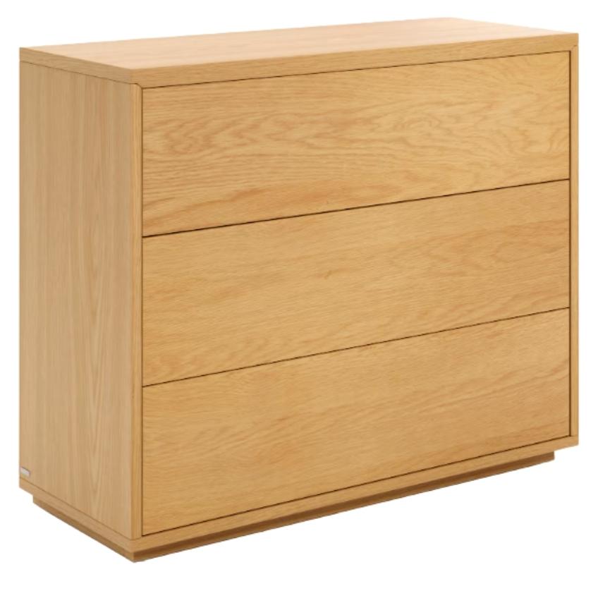 Jednoduchá designová komoda Kave Home Abilen s povrchem z dubové dýhy, bude ideálním designovým úložným prostorem pro váš obývací pokoj nebo ložnici. Světlá barva zapadne do skandinávských i minimalistických interiérů. Praktické 3 zásuvky, prostorná komoda umožní snadno udržet pořádek.
