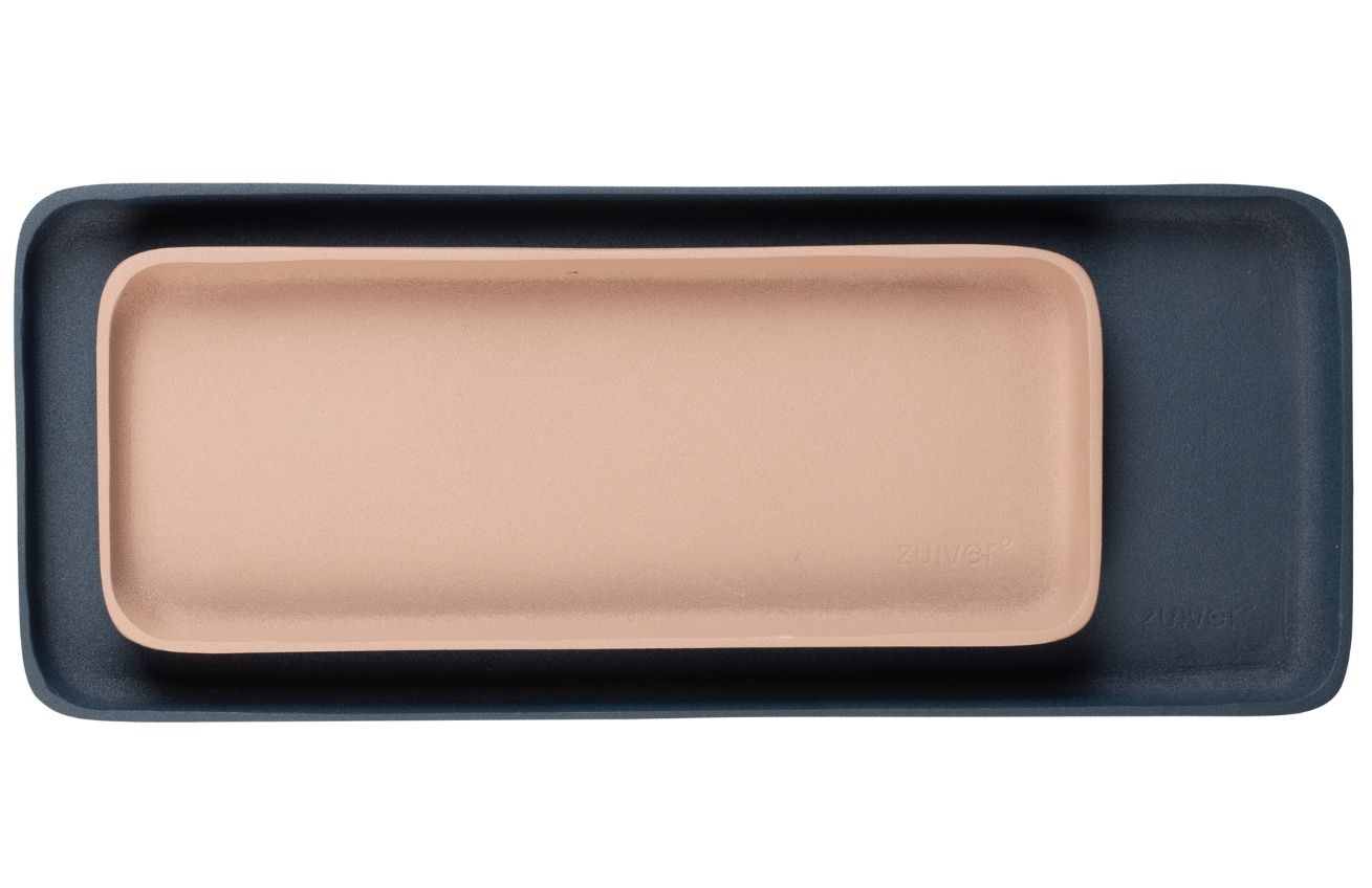 V setu REBEL značky ZUIVER najdete dva dekorační tácy z lakovaného hliníku. Použít je můžete například k naaranžování květin nebo svíček. Využití najdou také při stolování - lze na nich servírovat jednohubky nebo malé dortíky. Menší z táců je růžový, větší má modrou barvu. K dispozici je také zeleno béžová barevná varianta.
