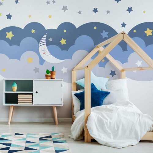 Nástěnná samolepka Ambiance Scandinavian Clouds With Stars And Moon je k dostání za cenu 669 .