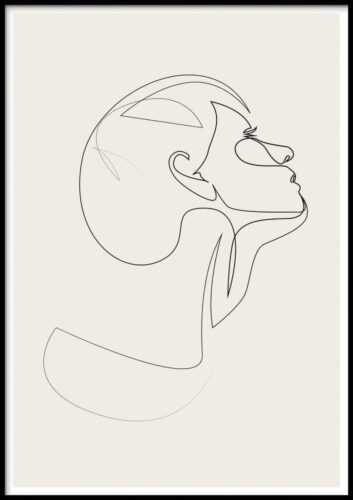 Jednoduchá skica hlavy hezky doplní zejména moderní a čistý interiér bez velké zdobnosti, elegantní interiér inspirovaný funkcionalismem nebo minimalisticky zařízený obývací pokoj.