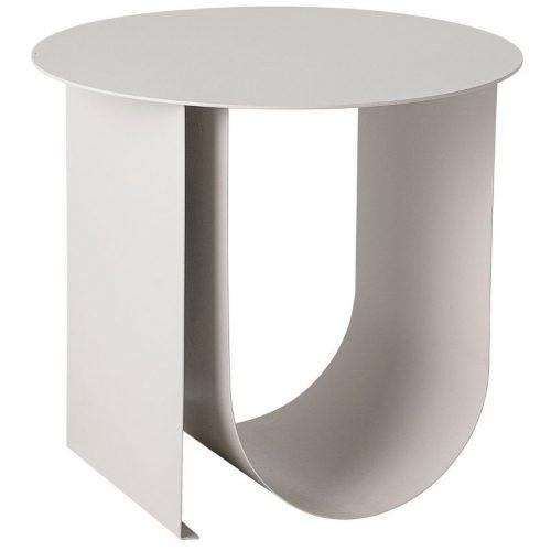 Odkládací stolek Bloomingville Cher si získá vaši pozornost svým originálním tvarem. Deska i podnož stolku jsou vyrobeny z pevného lakovaného kovu světle šedé barvy. Součástí podnože je zaoblená deska, která může sloužit jako praktický úložný prostor na knihy a časopisy. Stolek skvěle zapadne především do moderních interiérů.