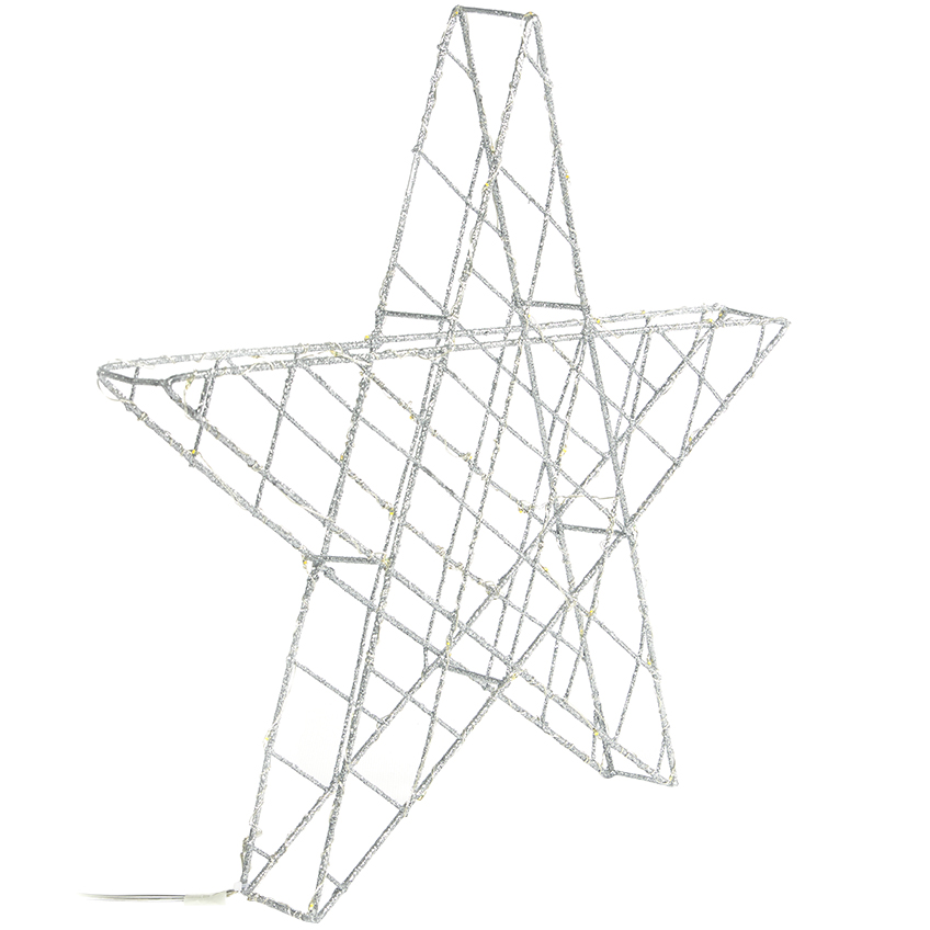 Dolaďte vaši vánoční výzdobu k dokonalosti se stříbrnou vánoční světelnou dekorací ve tvaru hvězdy Kave Home Orazia. Hvězda je osazena LED světýlky, které během večera zútulní váš domov, ale zároveň je kovový povrch ozdoben třpytkami, díky čemuž zaujme jako zářivá dekorace i během dne.