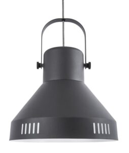 Černé závěsné světlo Kin je vyrobené z kovu. Jeho industriální pojetí je evidentní i na stínidle, které je celé matné.