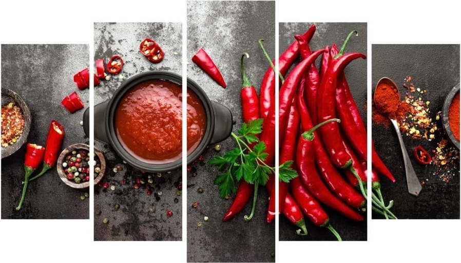 Oživte šeď prázdných zdí nápaditým obrazem. Tento se skládá z pěti kousků, které ve výsledku tvoří impozantní dílo. Obraz je vyroben z MDF desky, která je velmi lehká na údržbu. Obraz tak stačí pravidelně otírat lehce navlhčeným hadříkem a máte vystaráno.